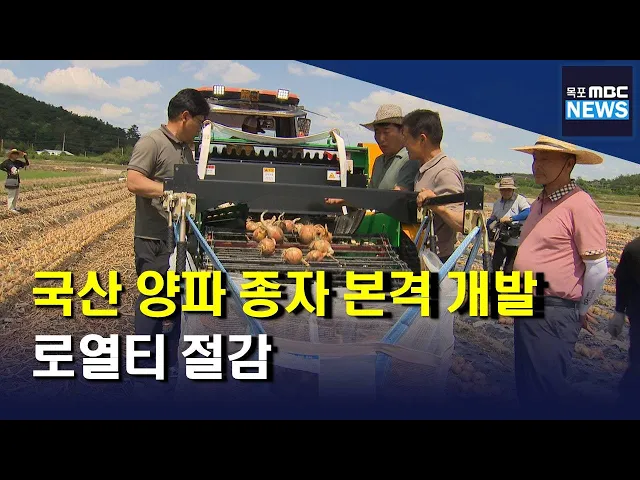 ◀ANC▶ 우리나라에서 생산되는 양파 종자 자급률은 30%에 머물고 있는데요. 그만큼 수입 의존도가 높다는 말입니다. 전라남도가 수입 품종을 대체할 수 있는 국산 품종 개발에 본격 나서고 있습니다. 박종호 기자가 취재했습니다. ◀END▶ ◀VCR▶ 트랙터가 지나가자 양파가 자동으로 수확돼 큰 망에 담겨집니다. 국산 ...
