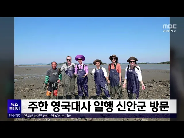 콜린 제임스 크룩스 주한영국대사 일행이 1박 2일 일정으로 신안군을 방문했습니다. 크룩스 대사 일행은맨손 갯벌낙지잡이를 직접 체험하고만여 마리의 괭이갈매기가 번식하는 불무기도를 방문해 갯벌 보전정책 등을 살폈습니다. 크룩스 대사는 영국 출신 미술가인 안토니 곰리가비금도 설치 중인 '바다의 미술관'이 완성...
