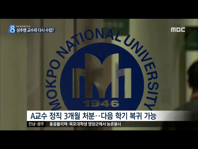 ◀ANC▶ 지난해 제자를 성추행한 의혹이 불거졌던 국립대 교수가 징계를 마치고 교단에 복귀할 전망입니다. 피해 학생들은 반발하고 있고, 대학 측도 뒤늦게 진화에 나섰습니다. 김진선 기자입니다. ◀END▶ ◀VCR▶ 목포대학교 모 학과 여학생들이 교내 성희롱고충심의위원회를 찾은 건 지난해 7월. 전공 교수인 A씨의 ...