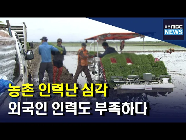 ◀ANC▶ 건설현장 뿐 아니라 이제 농촌에서도 일할 사람이 부족하다보니 외국인 근로자들이 농삿일에 나서고 있습니다. 하지만 바쁜 영농철에는 외국인 인력마저 구하기가 어렵고 임금도 크게 오르면서 농민들의 부담이 커지고 있습니다. 안준호 기자가 취재했습니다. ◀END▶ ◀VCR▶ 모를 심기기 전에 모판을 정리하고...