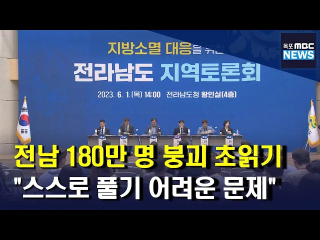 ◀ANC▶ 전남은 절반 이상의 시군이 인구감소로 인해 소멸 위기지역으로 지정될 만큼 그 상황이 심각한데요. 국회입법조사처가 지방소멸 대응을 위한 첫 지역토론회를 전남에서 열었습니다. 김진선 기자가 보도합니다. ◀END▶ ◀VCR▶ [반투명] 2004년 2백만 명대, 2017년 190만 명대가 무너진 전남 인구 지금까지181만...