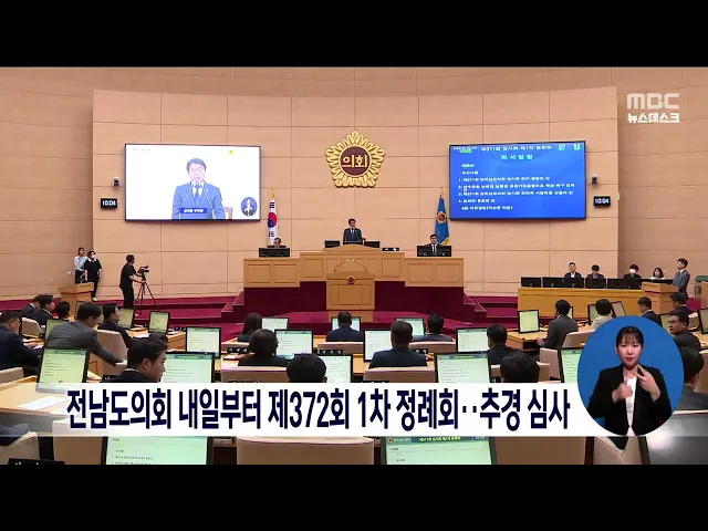 전남도의회는 내일(1)부터 16일 간의 일정으로 제372회 제1차 정례회를 운영합니다. 이번 정례회에서는 전남도청과 전남도교육청의 올해 제1회 추가경정예산안을 심의하고 공공심야어린이병원 지원 조례안 등 22건의 안건을 심사, 의결할 예정입니다.