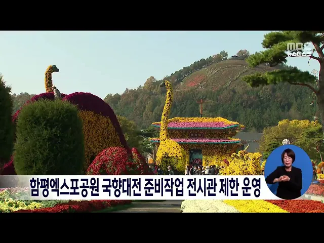 함평군은 엑스포공원 일부 전시관 운영을 오는 10월 열리는 대한민국 국향대전 준비작업으로 제한 운영합니다. 휴관하는 곳은 친환경 농업관과 황금박쥐 전시관으로, 다육 식물관과 자연생태관, 수생식물관, 나비곤충생태관 VR체험장은 연중 운영됩니다.