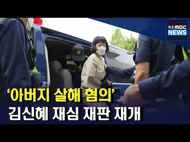 ◀ANC▶ 아버지를 살해한 혐의로 23년 째 복역중인 김신혜씨의 재심이 재개됐습니다. 변호인 교체와 재판부 기피 신청 등으로 계속 열리지 못했는데 1년여만에 다시 시작됐습니다. 서일영 기자가 보도합니다. ◀END▶ ◀VCR▶ 마스크를 쓰고 호송차에서 내린 김신혜 씨. 1년여만에 다시 열린 재심을 앞두고 적극적으로 ...