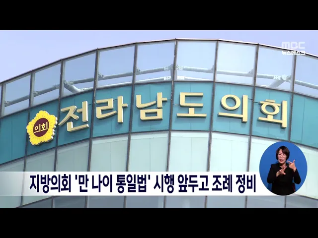 정부의 '만 나이 통일법' 시행을 앞두고 지방의회마다 조례규칙 개정을 준비하고 있습니다. 전남도의회와 시군의회는 각종 조례와 규칙 속의 나이 기준에서 '만'을 지우는 내용의 일괄 개정 조례안과 규칙안을 입법 예고했습니다. 오는 6월28일부터 시행되는 만 나이 통일법은 현재 연도에서 출생연도를 뺀 뒤 생일이 지났...