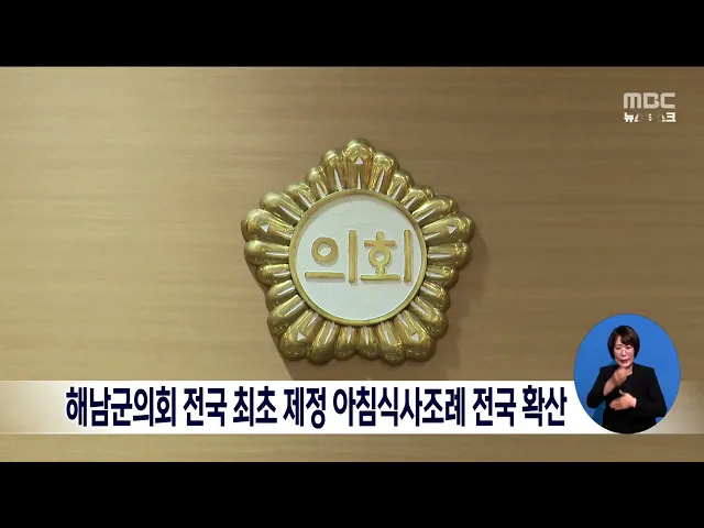 해남군의회가 지난해 11월 전국 최초로 제정한 '아침식사 거르지 않기문화 조성에 관한 조례'가 최근 여야 정치권이 호응하면서 전국으로 확산될 전망입니다. 해남군 아침식사조례는 일선 학교와 기관·사업장에서 아침식사를 제공할 경우 지방자치단체에서 지원하는 방식으로 지역 농수축산물의 소비 촉진과 주민 건강 증...