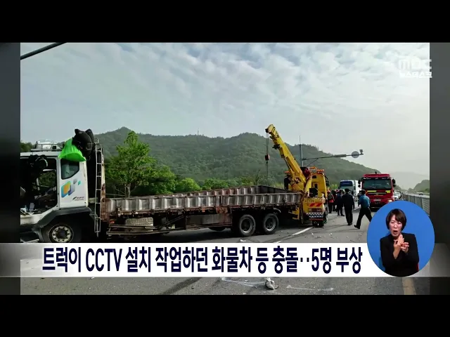 트럭이 CCTV 설치작업 하던 화물차 등 충돌.. 5명 부상