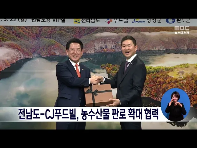 전라남도와 완도군,장성군은 CJ푸드빌과 전남 농수산물 활용 외식상품 개발과 홍보 업무협약을 체결했습니다. 이번 협약에 따라 CJ푸드빌은 자사 외식브랜드 등의 신메뉴 개발과 외식레스토랑 간편식 출시·판매에 전남지역 농수산물을 활용하고 베이커리도 계절 맞춤형 상품을 개발해 출시할 예정입니다. 전남 농수산물을 ...
