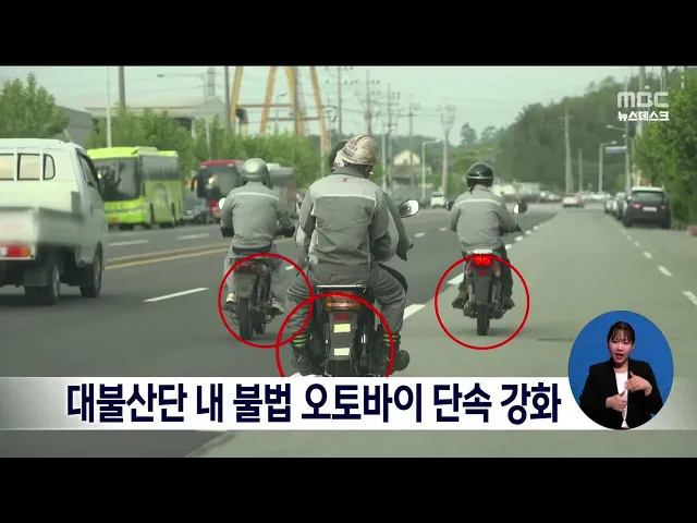 대불산단 내 불법 오토바이 단속이 강화됩니다. 영암경찰서는 대불산단에서 번호판이 없거나 무면허 오토바이 운행이 많다는 MBC 보도와 관련해 출퇴근 시간대, 수시로 단속반을 투입해서 이동식 단속을 이어나가기로 했습니다. 또 영암군청과 월 1회 이상 합동 단속을 통해 무등록 오토바이는 운전자에게 과태료를 부과하...