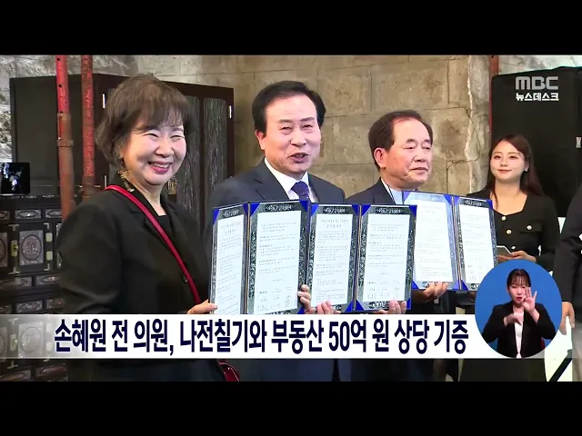 손혜원 전 국회의원과 크로스포인트문화재단이 나전칠기와 원도심 부동산 등 50억 원 상당의 재산을 목포시에 기증했습니다. 목포시와 손 전 의원 등은 근˙현대 나전칠기 작품 2백33점과 전시공간으로 조성할 부동산 10필지에 대한 기증식을 갖고 업무협약을 체결했습니다. 목포시는 앞으로 공유재산 심의회 등 행정 절차를...