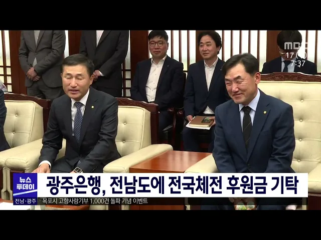 광주은행이 전국체육대회 성공개최를 위한 후원금 8천만원을 전라남도에 기탁했습니다. 후원금은 전남체육회를 통해 전국체육대회와 전국장애인 체육대회 개·폐회식 관람객 편의 용품, 참가 선수 지원금 등에 사용될 예정입니다. 광주은행은 또, 영업점 현금인출기와 창구 모니터를 활용해 전국체육대회 홍보에 나서기로 했...
