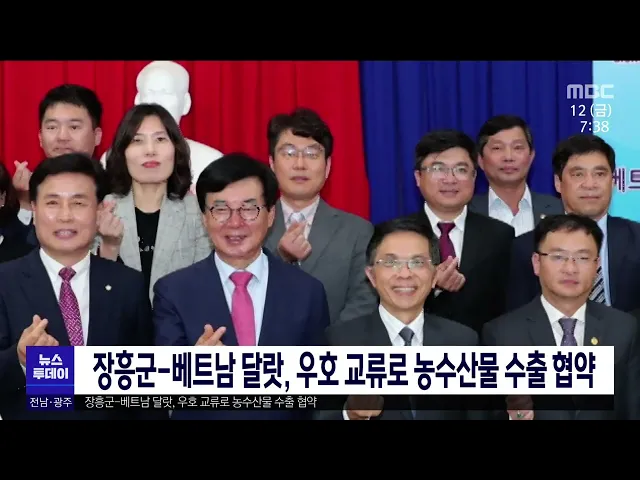 장흥군이 베트남 달랏시와 우호 교류 협약을 맺고 앞으로 5년 동안 100만 달러 규모의 지역 농특산물을 수출하기로 했습니다. 협약을 통해 달랏시에는 '장흥군 농특산물관'이 개관해 무산김과 표고버섯, 미역, 화장품 등이 전시 판매되고 장흥군과 통합의학과 생물의약 산업 등 기술 교류도 확대할 방침입니다.