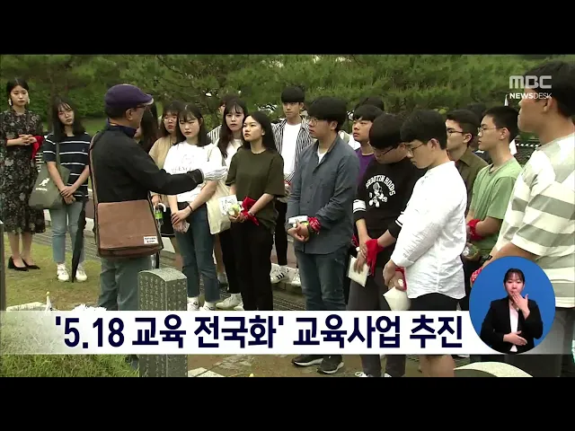 5.18 정신의 전국화와 세계화를 위한 각종 교육사업이 추진됩니다. 광주시교육청은 5.18 사적지 답사, 묘비 닦기 등 학생들이 직접 경험할 수 있는 활동을 마련하고 사이버 5.18기념관 등 온라인 교육을 통해, 전국에 있는 학교들이 5.18 민주화운동 교육에 참여할 수 있도록 독려할 계획입니다. 또, 전국 학생들이 5.18 민...