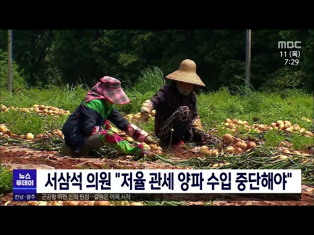 서삼석 국회의원은 국내산 양파 가격이 높다며 정부가 저율관세 수입을 확대하겠다고 밝힌 것은 농민은 안중에도 없는 정책이라며 양파 수입 대책이 즉각 중단돼야 한다고 주장했습니다. 서 의원은 양파가격이 평년에 비해 오른 것은 사실이지만 이는 비료값 등 생산비의 증가 때문으로, 실제 농가의 이윤으로 남는 것은 없...