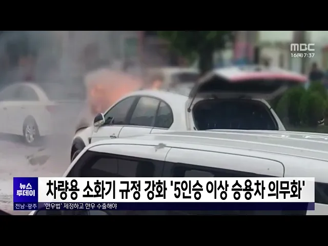 차량 화재 시 인명과 재산 등 피해를 줄이기 위한 차량용 소화기 관련 규정이 더욱 강화됩니다. 소방청에 따르면현행법상 7인승 이상의 자동차에 차량용 소화기 비치해야 했던 규정이올해 12월부터 5인승 이상의 모든 차량에 소화기를 의무 설치하도록 바뀔 예정입니다.최근 3년 동안 전국에서 발생한 차량 화재는 1만 1,30...