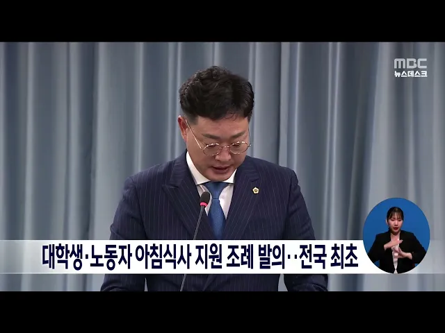 대학생*노동자 아침식사 지원 조례 발의..전국 최초
