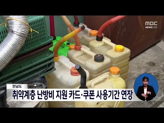 전라남도가 취약계층에 지원하는 난방용 등유와 LPG 구입 카드, 쿠폰 사용기간을 12월 말까지로 연장합니다. 취약계층 난방비 지원 사업은 등유나 LPG 보일러를 난방 수단으로 사용하는 세대에게 전용카드 또는 쿠폰을 지급하는 사업입니다.