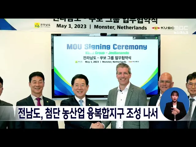 전라남도가 인공지능 첨단 농산업 융복합지구 조성에 나섰습니다. 유럽을 순방 중인 김영록 전남지사는 네덜란드 원예 전문 기업인 쿠보 그룹과 업무협약을 체결하고 첨단온실과 농업 자동화 기술을 적극 도입하기로 했습니다. 또 첨단온실 구축에 따른 기술 정보 교환과 기술 노하우 등을 연계한 협력 사업을 추진하기로 ...
