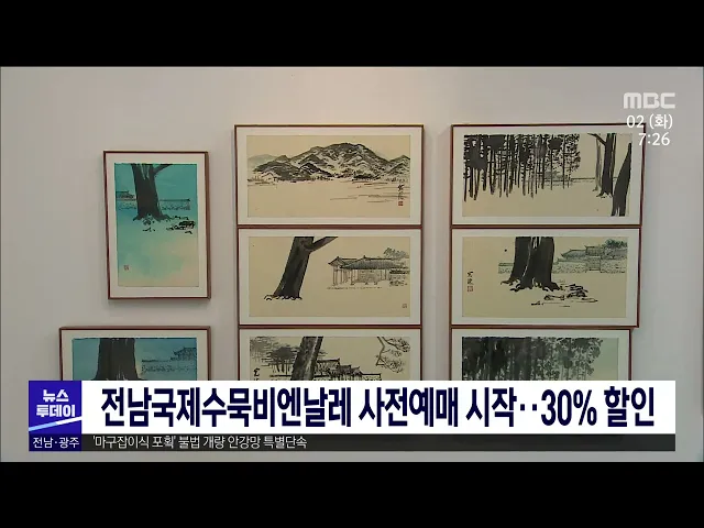 오는 9월부터 두 달 동안 전남 일원에서 열리는 2023 전남국제수묵비엔날레의 입장권 사전예매가 시작됐습니다 사전예매는 전남국제수묵비엔날레 누리집 등을 통해 현장 구매가보다 30% 할인된 가격으로 할 수 있는데, 입장권 소지자에게는 행사 기간 전남 유료 관광지 61곳과 식당, 숙박업소와 연계한 할인 혜택도 제공됩...