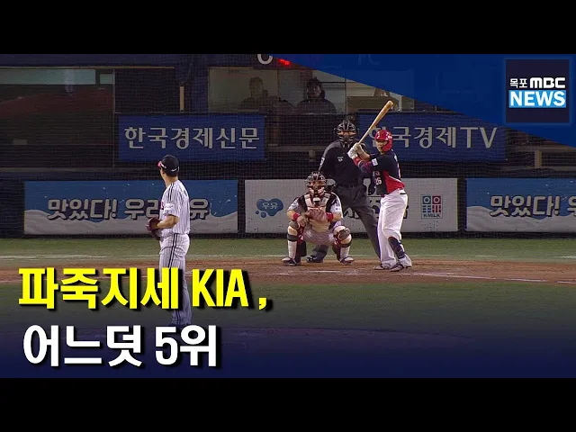 (앵커) KIA 타이거즈가 시즌 초반 부진을 털어내고 열흘 전부터 이어진 9연전에서 8승을 거두는 기염을 토했습니다. 꼴찌까지 추락했던 순위도 어느덧 5위까지 치고 올라왔습니다. 김철원 기자입니다. (기자) LG를 상대로 두 점차의 불안한 리드에서 맞이한 KIA의 9회초 2사 만루 상황. 3루 주자 김규성이 투구를 준비중이...
