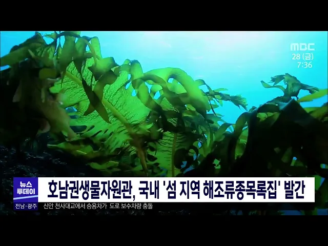 국립호남권생물자원관은 국내 1149개 섬에서 해조류 653종에 대한 목록과 분포 정보 등을 담은 '섬 지역 해조류종목록집'을 발간했습니다. 이번에 출현 확인 된 653종의 해조류는 국내 기록된 전체 기록 종의 약 65%에 해당합니다. 이는 섬 면적이 국토 면적의 약 5.4%인 것을 고려했을 때 육지 해안보다 섬 지역에 해조류 ...