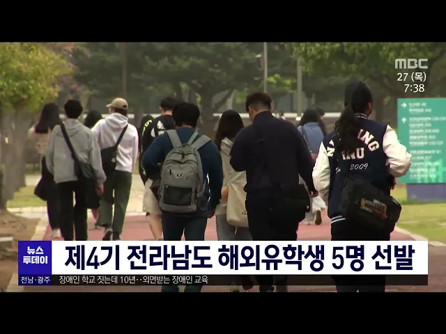 전라남도는 경제적 어려움 속에서도 해외 유학의 꿈을 키우는 지역 출신 인재 5명을 제4기 전라남도 해외유학생 지원 대상으로 선발했습니다. 전라남도 해외유학생 선발 대상자들에게는 학비와 생활비를 포함해 2년 동안의 유학비가 최대 1억 원 지원됩니다.