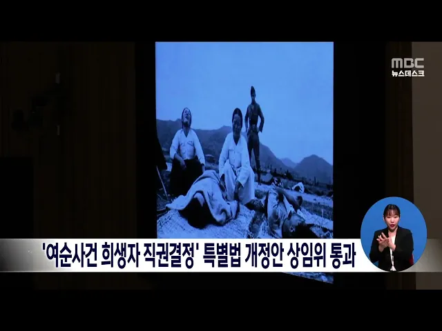 여순사건 희생자 결정 절차를 간소화하는 내용의 특별법 개정안이 국회 상임위원회 전체회의를 통과했습니다. 개정안에는 1기 진실화해위원회에서 여순사건 희생자로 인정받았거나 여순사건위원회가 작성한 진상조사보고서에 희생자로 등록된 경우에는 신고서 제출이나 사실조사 등의 절차를 거치지 않고 여순사건위원회가 ...