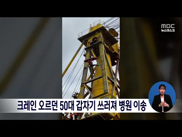 크레인 오르던 50대 갑자기 쓰러져 병원 이송
