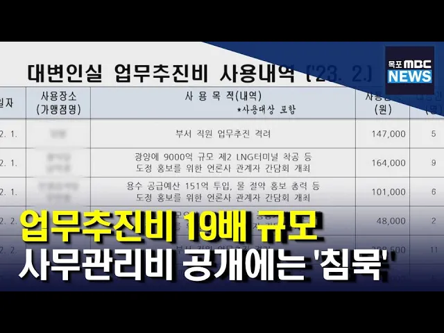 ◀ANC▶ 사무관리비 문제가 터진 이후 전남도청 공직사회는 '사무관리비'란 단어 자체를 입에 담기 어려운 금기어처럼 여기고 있습니다. 이같은 분위기 속에 엄연한 세금이자 대국민 공개 문제임에도 불구하고 사무관리비 사용내역 공개 요구에 전라남도는 여전히 침묵하고 있습니다. 이어서 양현승 기자입니다. ◀END▶...
