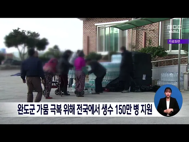 극심한 가뭄을 겪고 있는 완도군에 전국에서 생수 지원이 이어지고 있습니다. 생수는 김제시와 밀양시, 사랑의 열매, 아이쿱자연드림 등 30여곳에서 지원됐으며 150만병에 이릅니다. 완도군은 생수를 식수난을 겪고 있는 각 섬에 전달하고 있습니다.