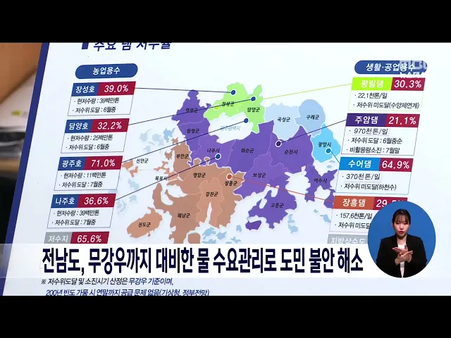 전라남도가 중장기 물 공급 계획 마련 등을 통한 가뭄 대책을 강력하게 추진하기로 했습니다. 문금주 전라남도 행정부지사는 가뭄대책 추진 브리핑을 통해 도서지역 광역상수 해저관로 건설과 영산강 농업개발사업을 조기 추진할 수 있도록 하고 가능성이 희박한 무강우까지 대비한 선제적 대응으로 물 공급 불안감을 해소...