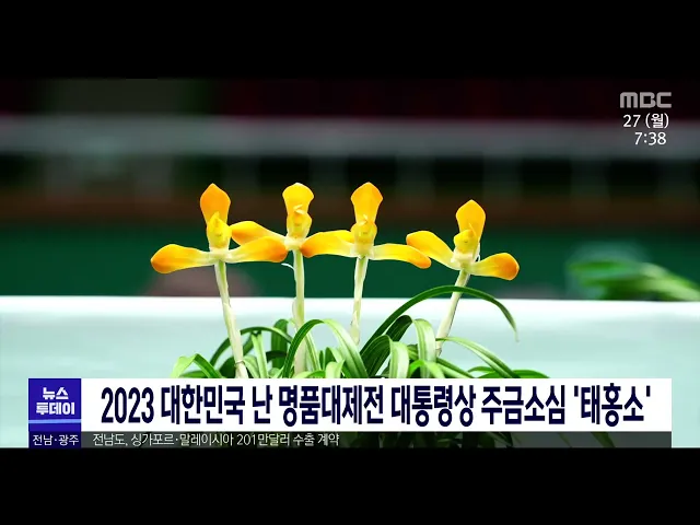 2023 대한민국 난 명품 대제전’이 한국춘란의 최대 자생지 함평군에서 열려 화예품과 엽예품 등 450점이 전시됐습니다. 함평문화체육센터에서 열린 춘란 전시회에서 오순철씨가 출품한 한국춘란 주금소심인 '태홍소'가 대통령상에 선정되는 등 150여 작품이 장관상 등으로 우수평가를 받았습니다.