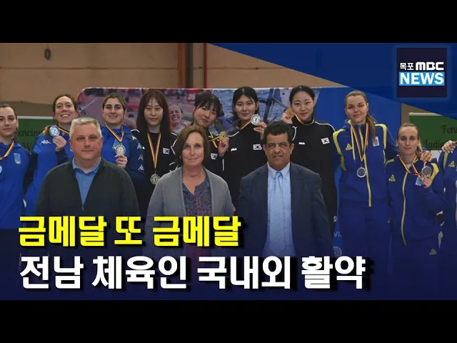 ◀ANC▶ 전남도청 펜싱팀 최세빈 선수가 벨기에 여자 사브르 월드컵 단체전에서 우승하는 등 전남 체육인들의 활약이 돋보이고 있습니다. 세계는 물론 각종 전국대회에서도 우수한 성적을 거두고 있는 전남 체육인들의 소식을 김진선 기자가 전해드립니다. ◀END▶ ◀VCR▶ 벨기에 신트니클라스에서 열린 국제펜싱연맹 ...