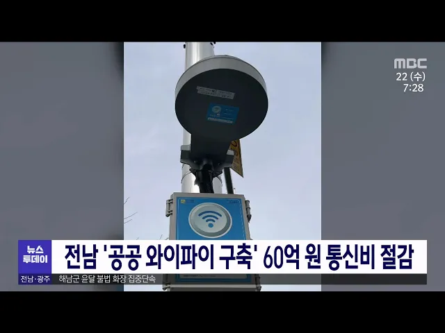 전라남도는 무료 공공 와이파이 구축으로 지난해 통신비를 대폭 절감했습니다. 전라남도가 구축한 와이파이 3979회선의 지난해 이용 건수는 전년보다 48% 증가한 3억 1000만건으로 개인 통신비로 환산하면 60억원에 달합니다. 전라남도는 생활 동선과 밀접한 버스 승강장, 도서관 등에 공공 와이파이 1669회선을 추가 구축...