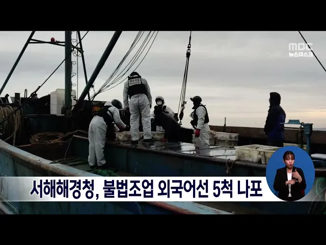 서해지방해양경찰청은 국내 배타적경제수역에서 불법 조업한 중국어선 5척을 붙잡았습니다. 이들은 어획량을 축소 기재하거나 조업일지를 기재하지 않은 혐의를 받고 있으며, 담보금 1억 6천만 원이 징수됐습니다. 서해해경은 또, 위반사항이 경미한 선박 3척에 대해 경고장을 발부했습니다.