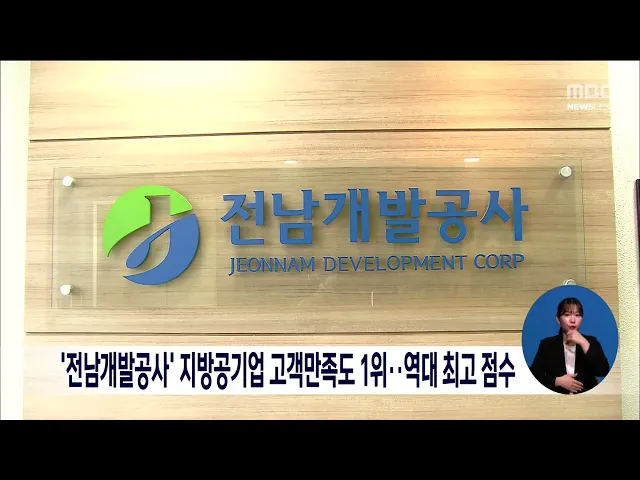 전남개발공사가 지방공기업 경영평가 고객만족도 조사에서 역대 최고 점수인 91.3점을 받아 전국 도시개발공사 부분에서 1위를 차지했습니다. 이번 조사는 지난해 6월부터 10월까지 공사 이용고객을 대상으로 진행됐으며, 평가항목은 서비스 환경, 사회적 만족, 전반적 만족 등 5개 분야 15개 항목을 전화와 면접조사 방식...