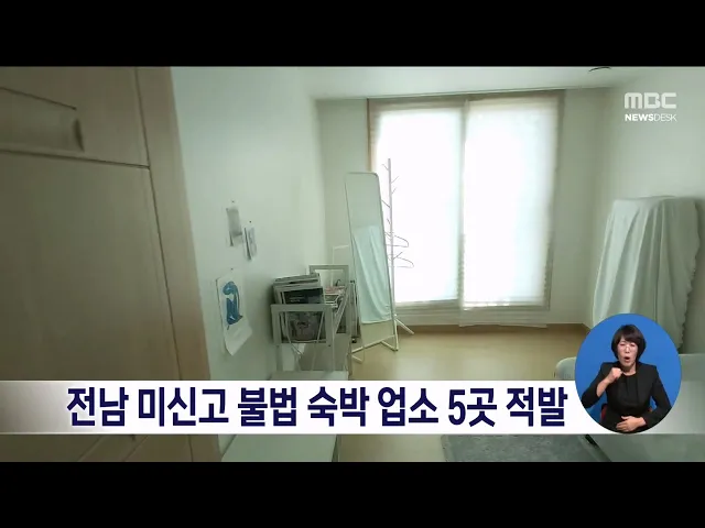 전남 미신고 불법 숙박 업소 5곳 적발