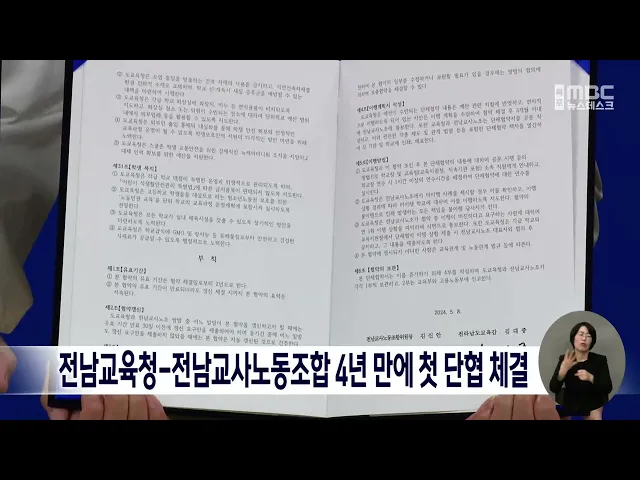 전라남도교육청과 전남교사노동조합이지난 2020년부터 논의가 시작된단체협약을 4년 만에 체결했습니다. 이번 협약은 지난 2020년 5월 시작된 이후25차례의 실무교섭을 거쳤으며양측은 교원의 전문성 신장과 학교 업무 정상화, 교원행정업무 경감 등 204개 항을 최종 합의했습니다.