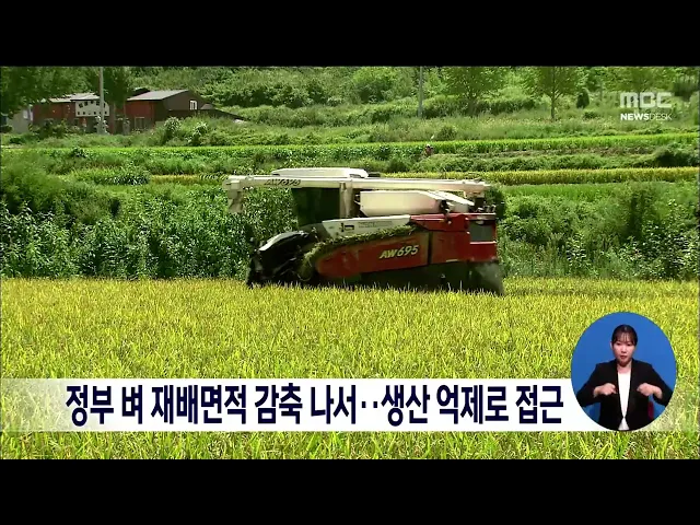 정부가 올해 벼 재배면적 3만7천헥타르 감축에 나서는 등 쌀값 대책을 생산억제 방식으로 접근하는 모양새입니다. 농식품부는 올해 쌀 적정생산을 위한 면적을 작년보다 3만7천헥타르 줄어든 68만헥타르로 추산하고, 논콩, 가루쌀 등 타작물 재배 지원을 통해 농지를 줄일 계획이라고 밝혔습니다. 또 내년부터는 다수확 품...