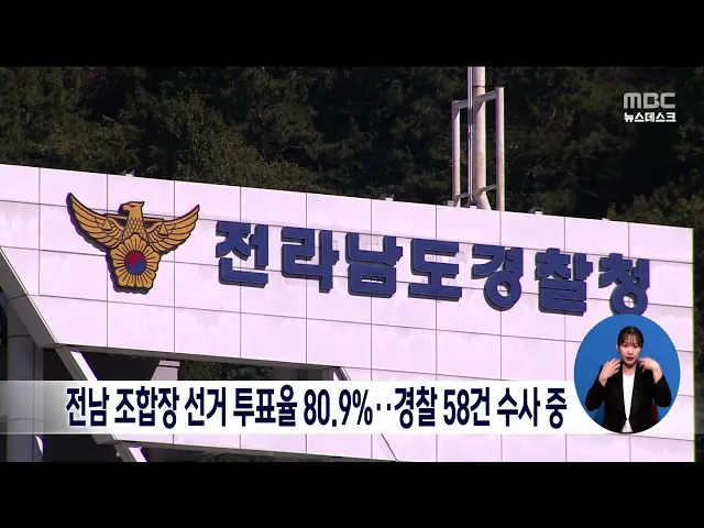 제3회 전국동시조합장선거가 모두 마무리된 가운데 전남지역 투표율은 80.9%를 기록했습니다. 한편 전남경찰청은 조합장 선거와 관련해 58건을 수사하고 있으며, 84명이 연루된 것으로 나타났습니다. 위탁선거법 위반 사건은 선거일로부터 6달 안에 공소제기가 이뤄져야 하며, 9월 8일까지 경찰의 수사가 속도를 낼 전망입...