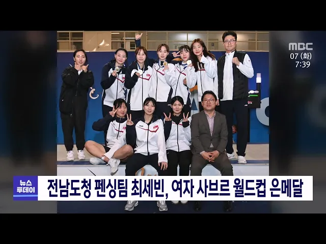 전남도청 펜싱팀 최세빈 선수가 그리스 아테네에서 열린 국제펜싱연맹 월드컵에서 여자사브르 단체전에 출전해 은메달을 획득했습니다. 최세빈 선수는 지난해 11월 알제리 월드컵에서 동메달을 획득한 것을 시작으로 3연속 국제대회에서 입상했습니다.