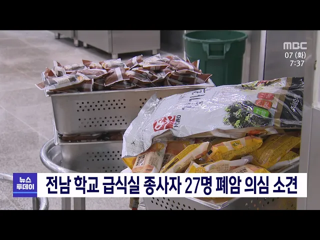 전남지역 학교 급식실 종자사 27명이 폐암의심 소견을 받은 것으로 나타났습니다. 국회 교육위원회 강득구 의원이 발표한 전국 학교 급식종사자의 폐 CT 검진 결과, 전남에서는 의심 19명, 매우 의심 8명 등이 폐암 의심 소견을 받았습니다. 한편 전남지역 학교 급식실 종사자 가운데 3275명 가운데 23.8%가 이상 소견을 받...