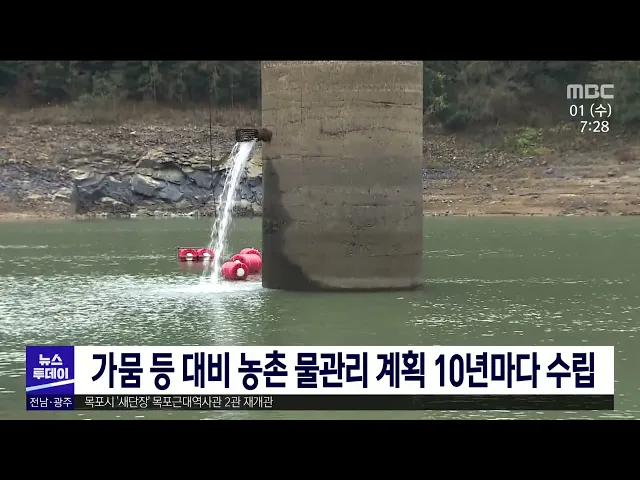 최근 가뭄과 폭우 등 이상 기후가 심해진 가운데 정부가 10년 마다 농촌 물관리 계획을 세우고 5년 마다 타당성을 검토하도록 하는 농어촌정비법 개정안이 국회를 통과했습니다. 이 개정안을 대표 발의한 서삼석 국회의원은 2013년 세웠던 물관리 계획이 지금까지 적용돼 최근 급변하는 대규모 가뭄 등 이상 기후에 대응하...