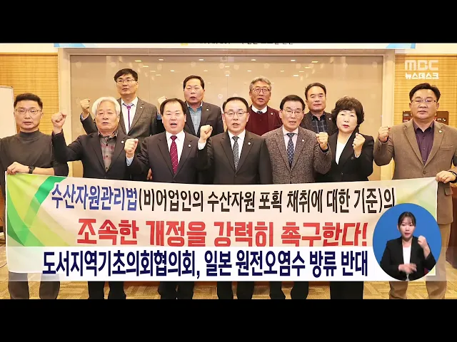 전국 15개 기초의회가 소속된 '도서지역 기초의원협의회'는 일본정부가 추진하는 후쿠시마 원전 오염수 방류결정 철회를 촉구하는 결의문을 채택해 일본대사관에 전달하기로 했습니다. 협의회는 \"132만톤에 달하는 일본원전 오염수가 향후 30년간 방류될 경우, 해상은 물론 육상의 모든 생태계가 오염된다\"며, 우리 국회...