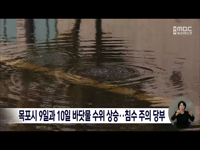 목포시는 대조기인 내일(9일)과 모레 자정부터 새벽 6시 사이 바닷물 수위가 5미터 가까이 상승할 것으로 보고 침수피해 예방을 당부하고 있습니다. 목포시는 이에 따라, 비상근무반을 편성해 침수예방을 위해 배수펌프장과 배수갑문 등에 대해 사전 점검을 실시하고 있습니다.