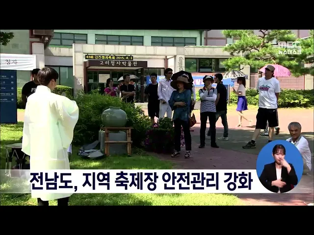 전라남도는 올해 전국체전 등 4대 국제행사가 열려 많은 인파가 모일 것으로 예상됨에 따라 지역 축제장 안전점검을 강화합니다. 세부 점검사항은 축제장 관람객 수용 인원의 적정성과 구조,구급 등 축제장 안전관리 대책 수립 여부, 축제장 질서 유지 등 교통대책 등입니다. 또 축제장 내외 시설물과 소방?전기?가스설비...