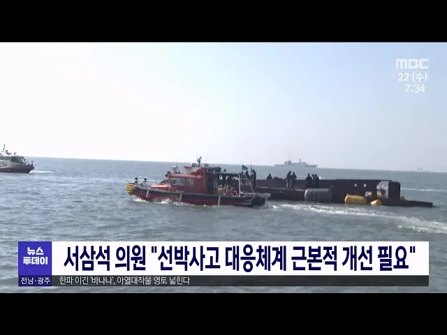 서삼석 의원 "선박사고 대응체계 근본적 개선 필요"