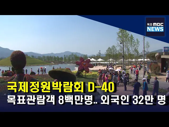 ◀ANC▶ 2023순천만국제정원박람회 개막이 이제 40일 앞으로 다가왔습니다. 이번 박람회의 목표 관람객 수는 8백만 명, 이가운데 외국인이 32만 명입니다. 최우식 기자가 보도합니다. ◀VCR▶ 2023순천만국제정원박람회는 우리 정부와 국제원예생산자협회가 승인한 범국가적인 국제 행사로, 전세계인이 함께 즐길 수 있는...
