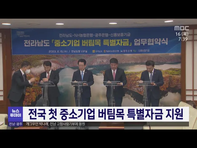 전라남도가 NH농협은행과 광주은행, 신용보증기금과 중소기업 버팀목 특별자금 융자지원 업무협약을 했습니다 . 중소기업 버팀목 특별자금 협약은 이자 부담을 덜어주기 위해 지자체와 금융권이 협력하는 전국 첫 사례로 기업당 3억 원 한도로 2년간 연 4% 이자를 전라남도가 3%, 금융기관이 1% 각각 지원할 예정입니다.