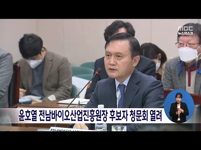 전남바이오산업진흥원장 후보자인 윤호열 전 삼성바이오로직스 부사장에 대한 인사청문회가 오늘(16) 전남도의회에서 열렸습니다. 전남도의회 경제관광문화위원들은 윤 후보자의 전문성과 경영 능력 등을 검증하고 직무수행계획 등을 확인한 가운데 내일(17) 청문보고서 채택 여부를 결정할 예정입니다.